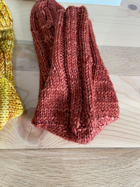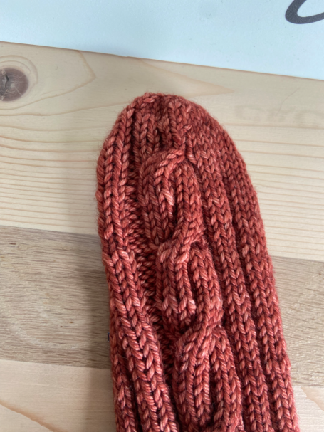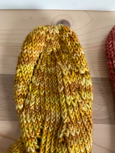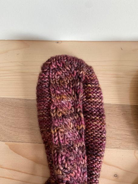 Talon à rangs raccourcis : discret et peu profond, c’est celui qui se rapproche le plus des chaussettes du commerce, parfait pour un rendu classique et confortable.